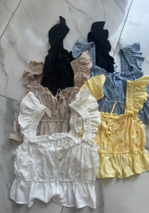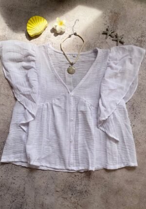 Blusa importada bordada en voile de algodón con espalda elastizada, talles S/M y L/XL