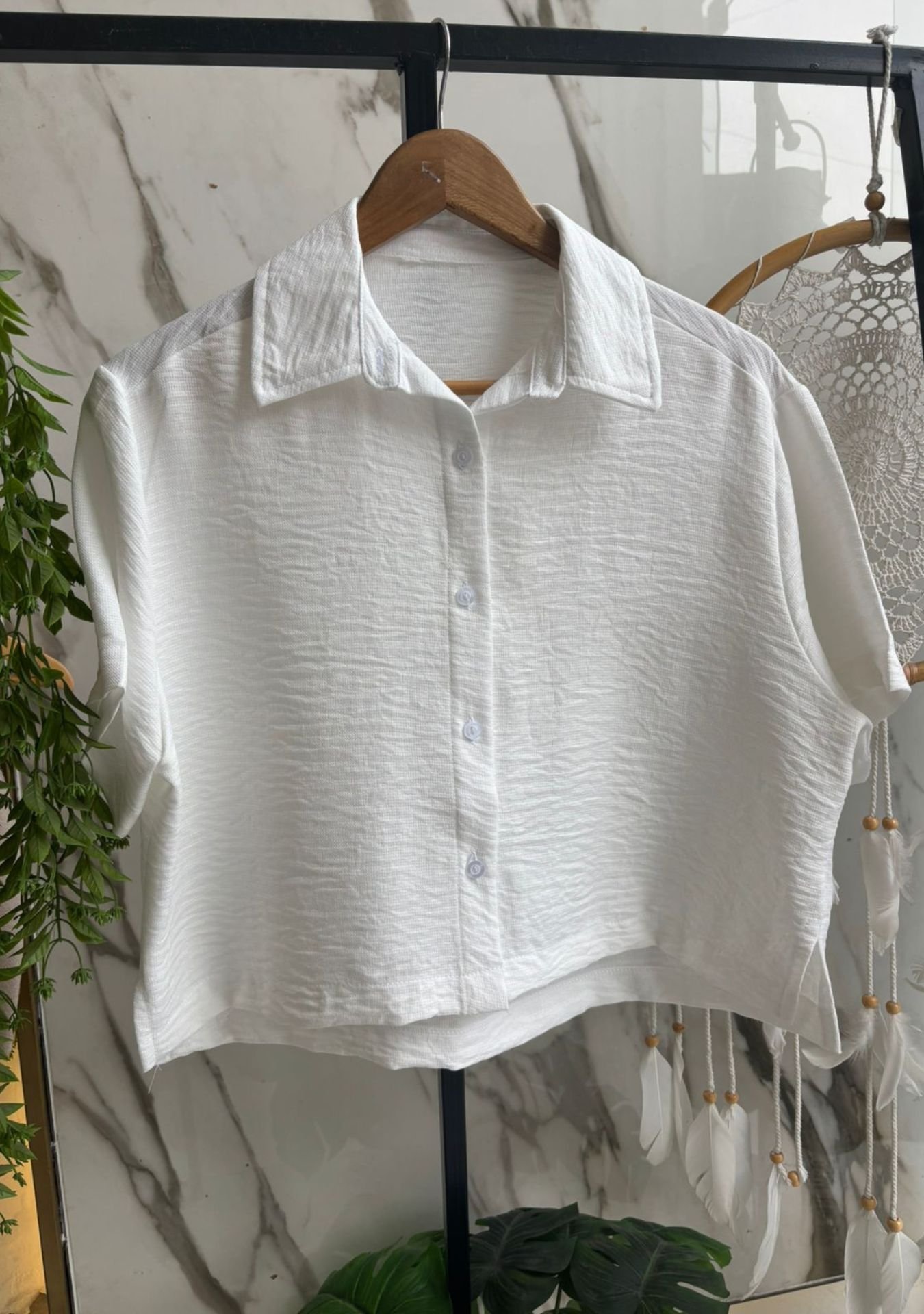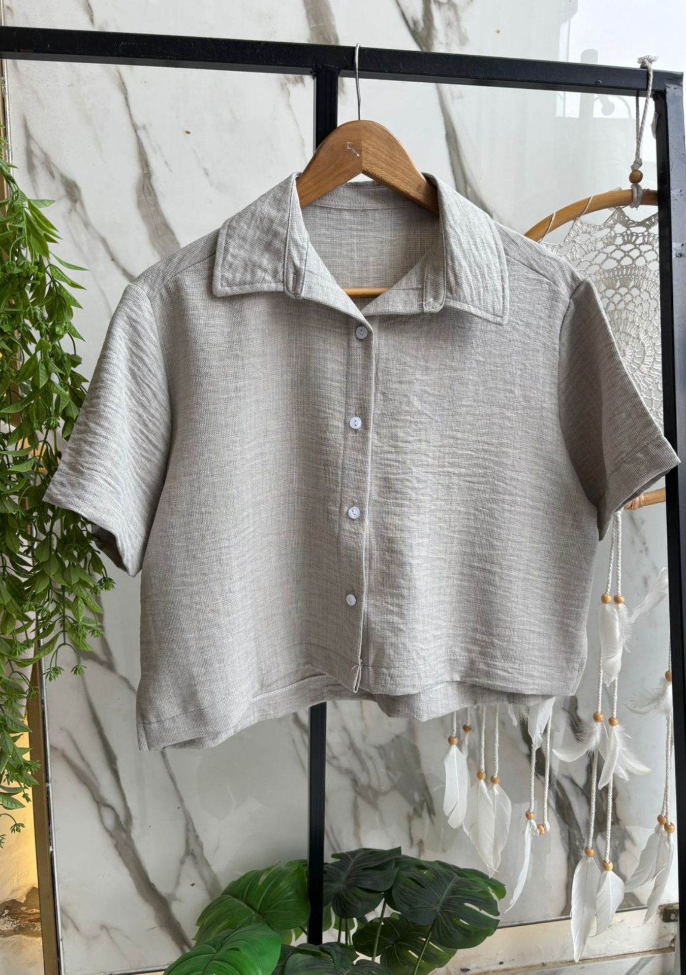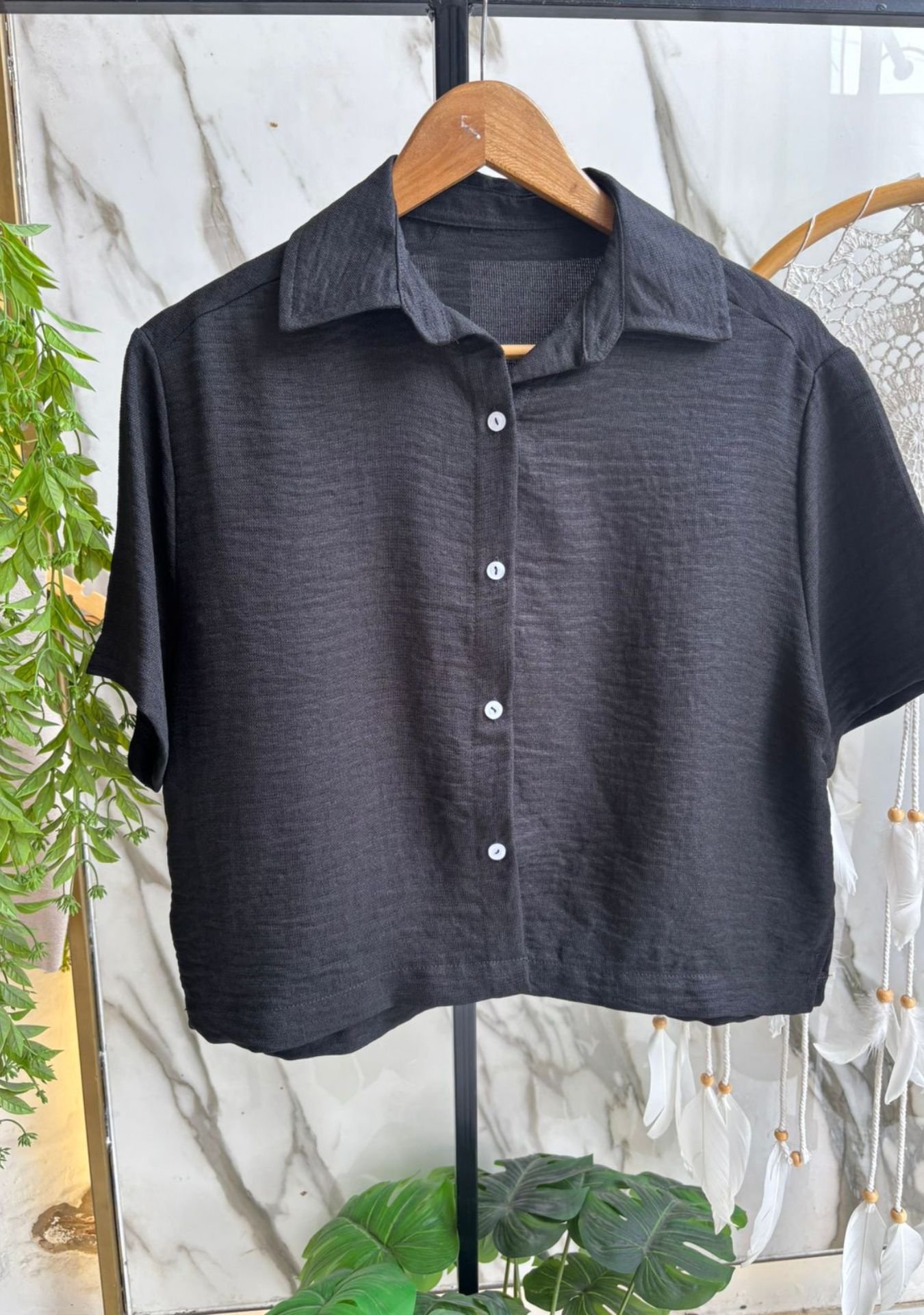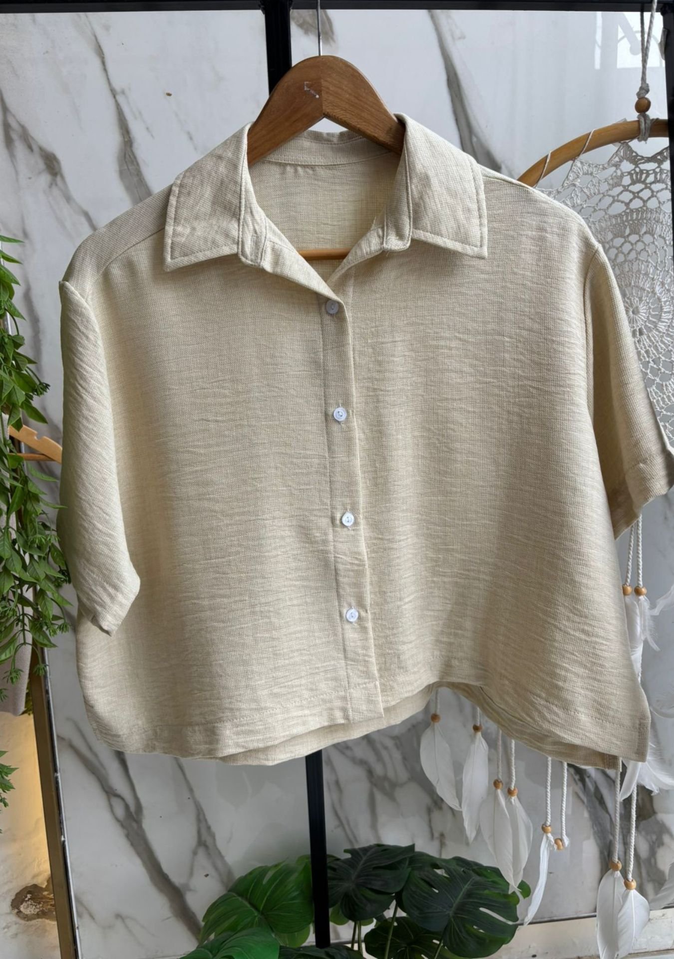 Camisa mangas cortas de polinen, talles M y XL