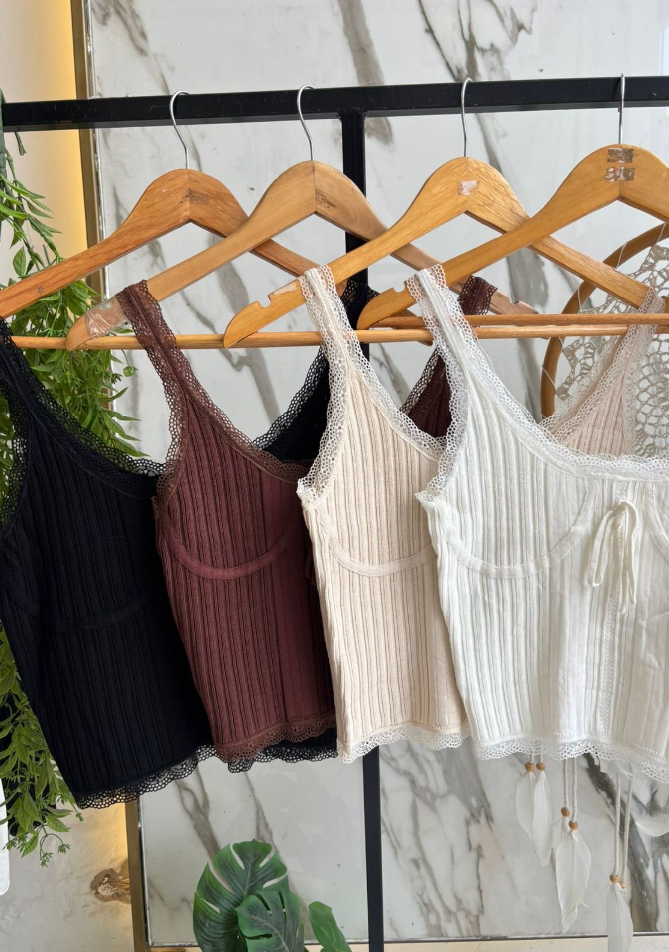 Musculosa importada de lycra con puntilla, talles S, M, L