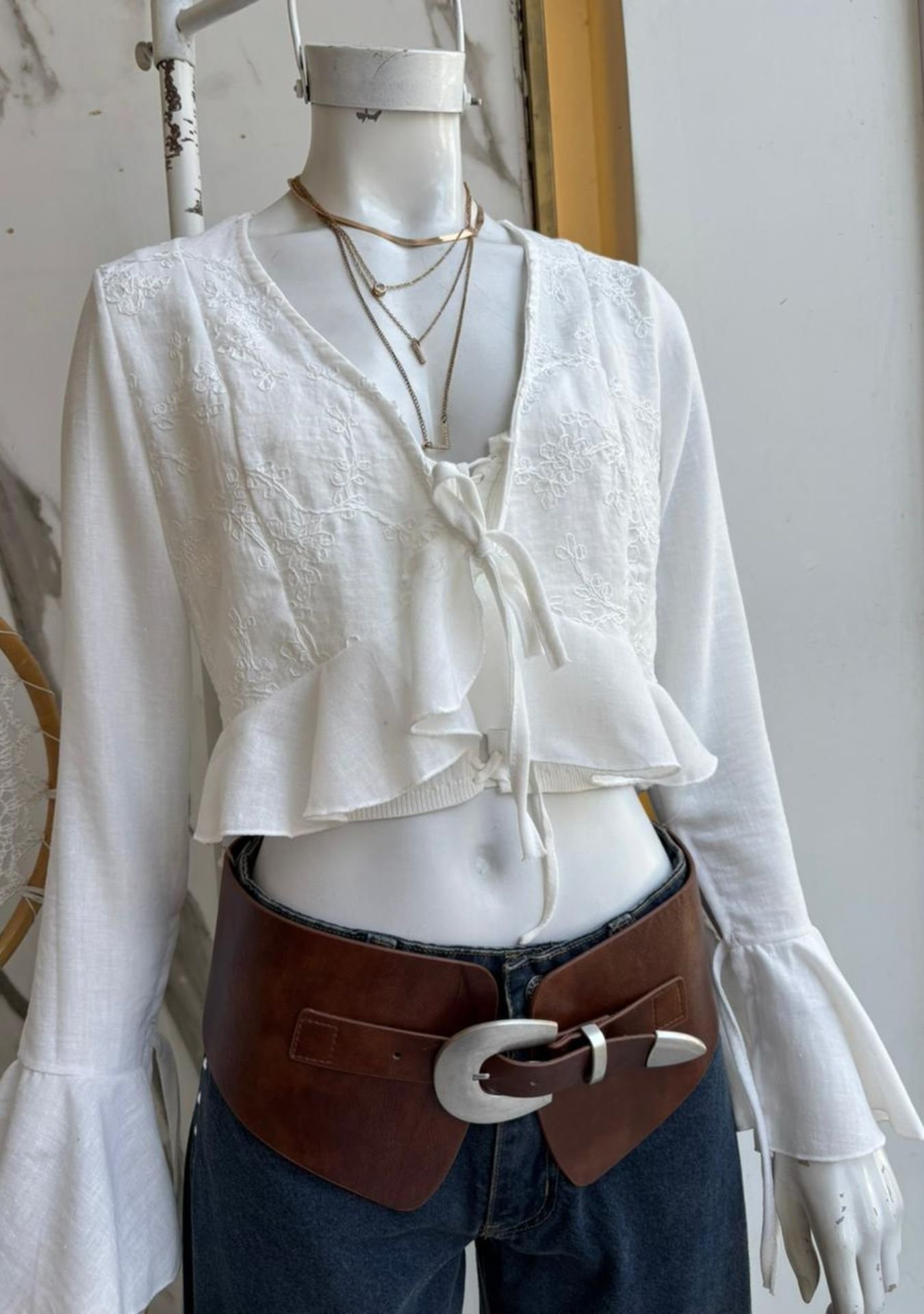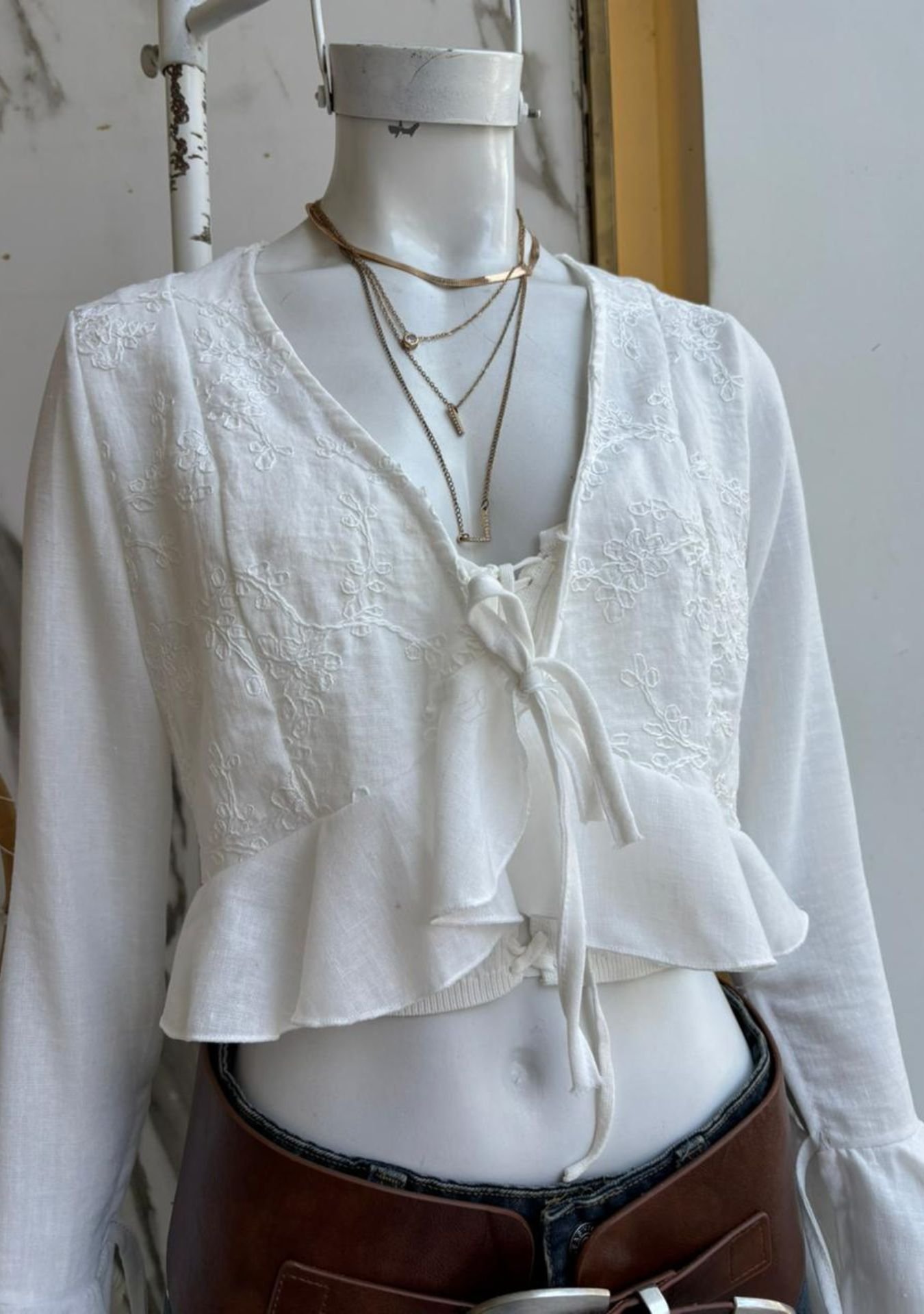 Saco de polinen liso y bordado, talles M y XL