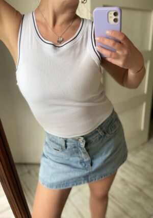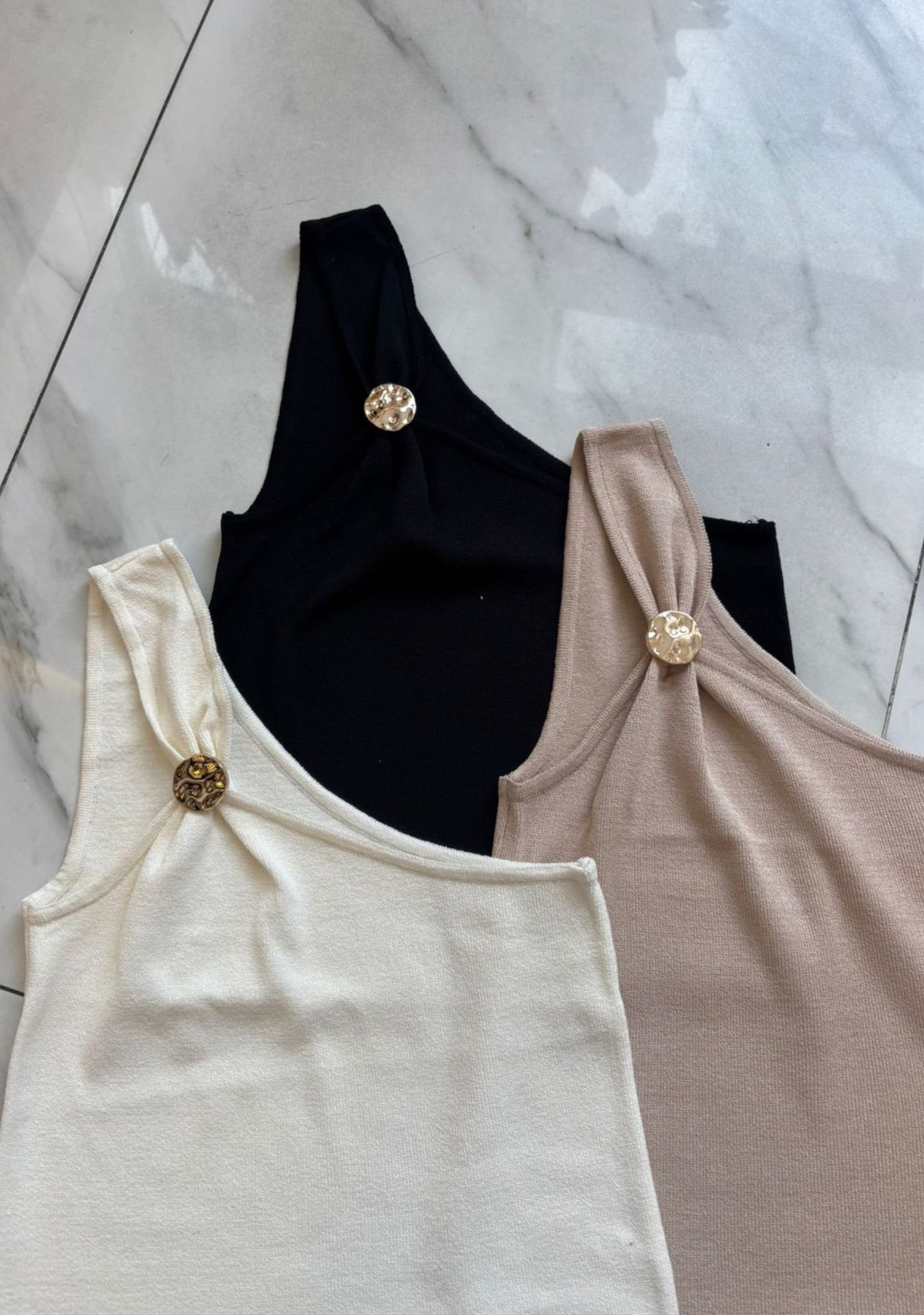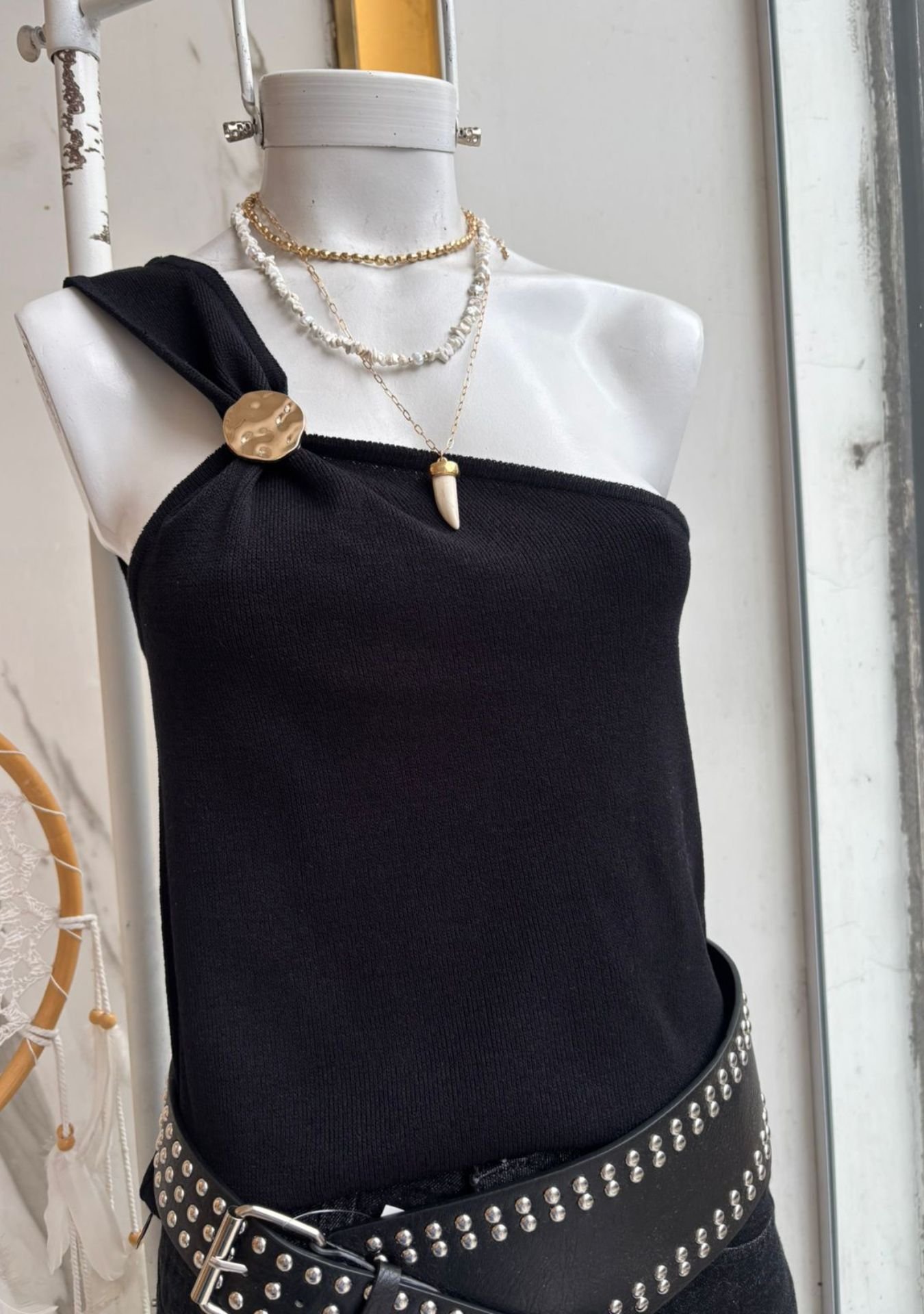 Musculosa asimétrica de un solo hombro de lycra con detalle de avío, talle único