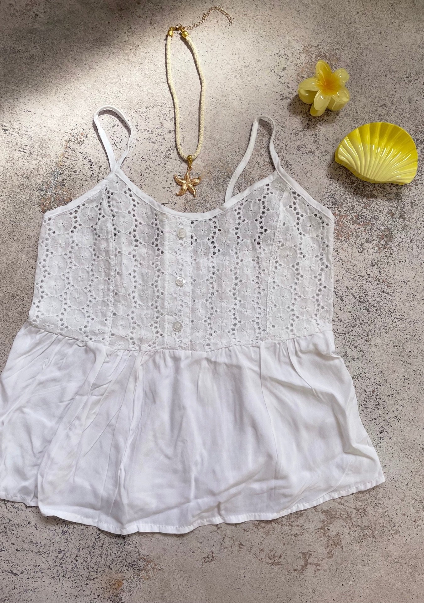 Musculosa importada de broderie y puntilla, talles S/M y L/XL
