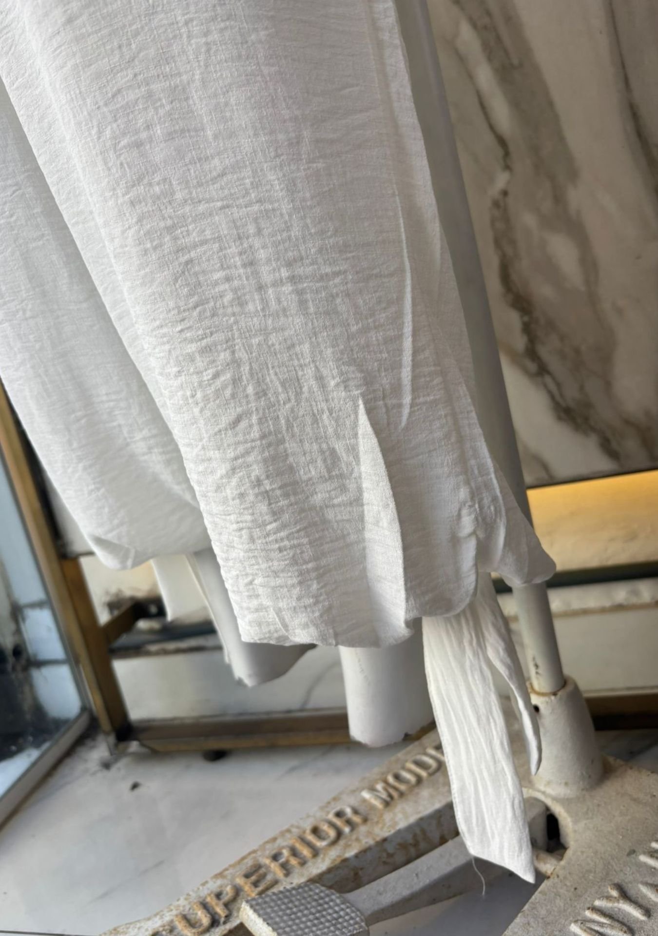 $17,760.00Pantalón tipo Aladin de seda arrugada con tiras para ajustar botamanga, talle único