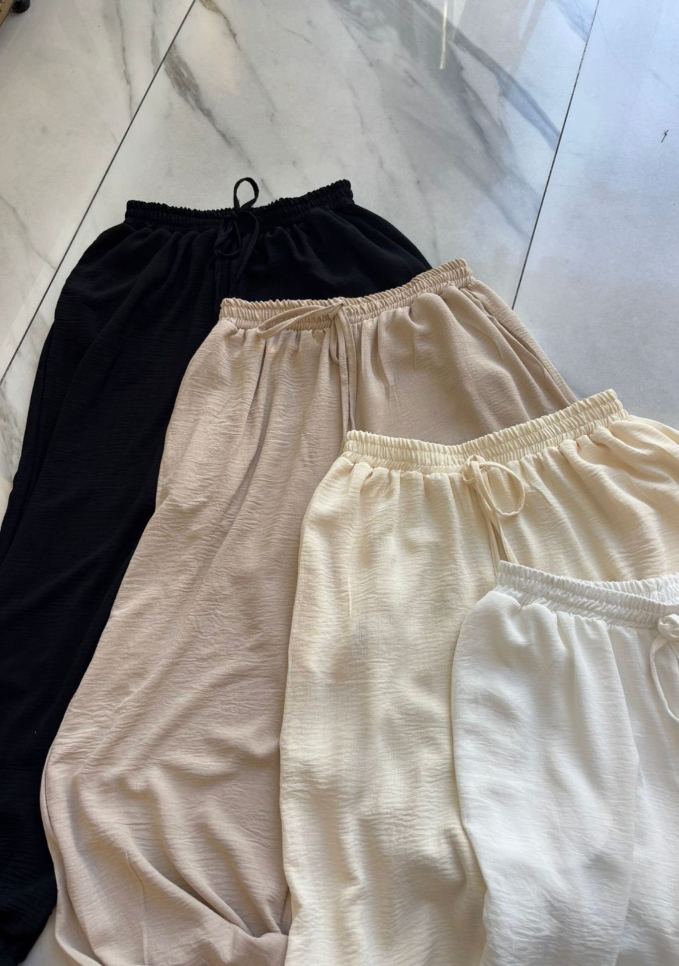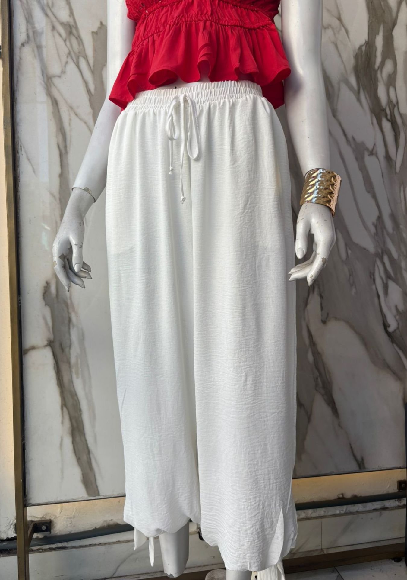 Pantalón tipo Aladin de seda arrugada con tiras para ajustar botamanga, talle único