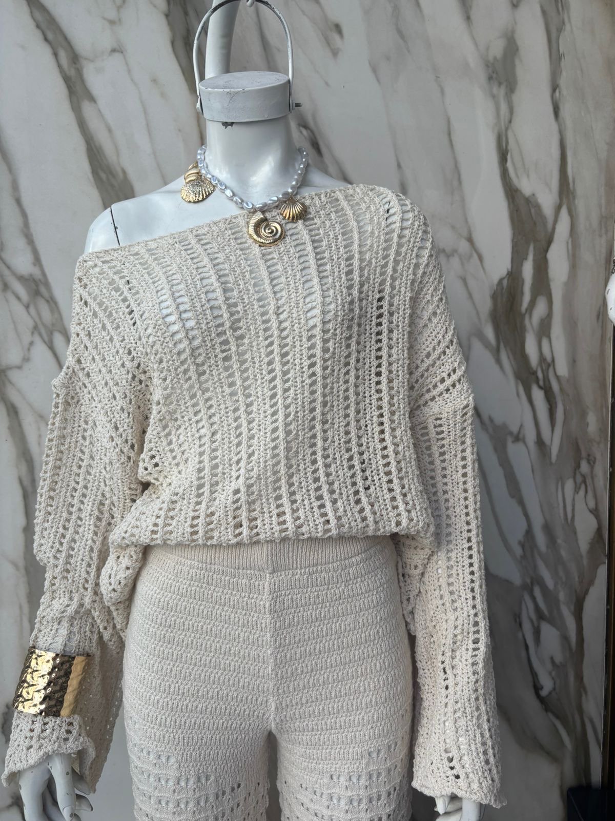 Pulover calado de hilo de algodón, talle único