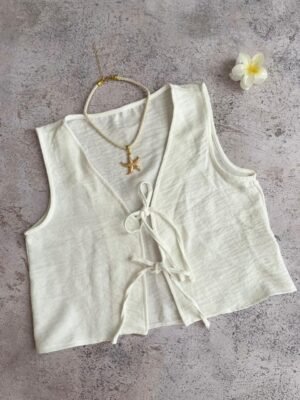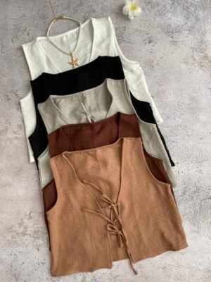 Chaleco de polinen con tiritas al frente para atar, talles S al XL