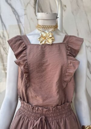 Blusa de polinen liso y bordado, talles M y XL