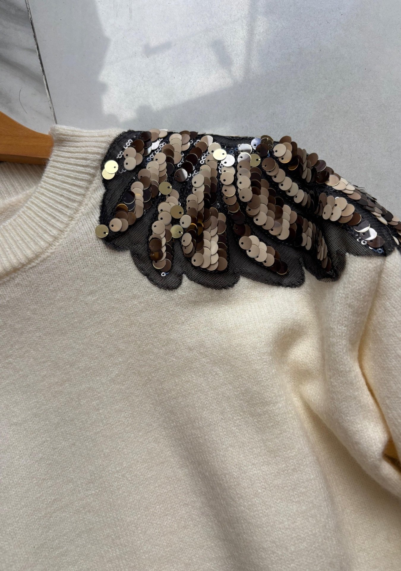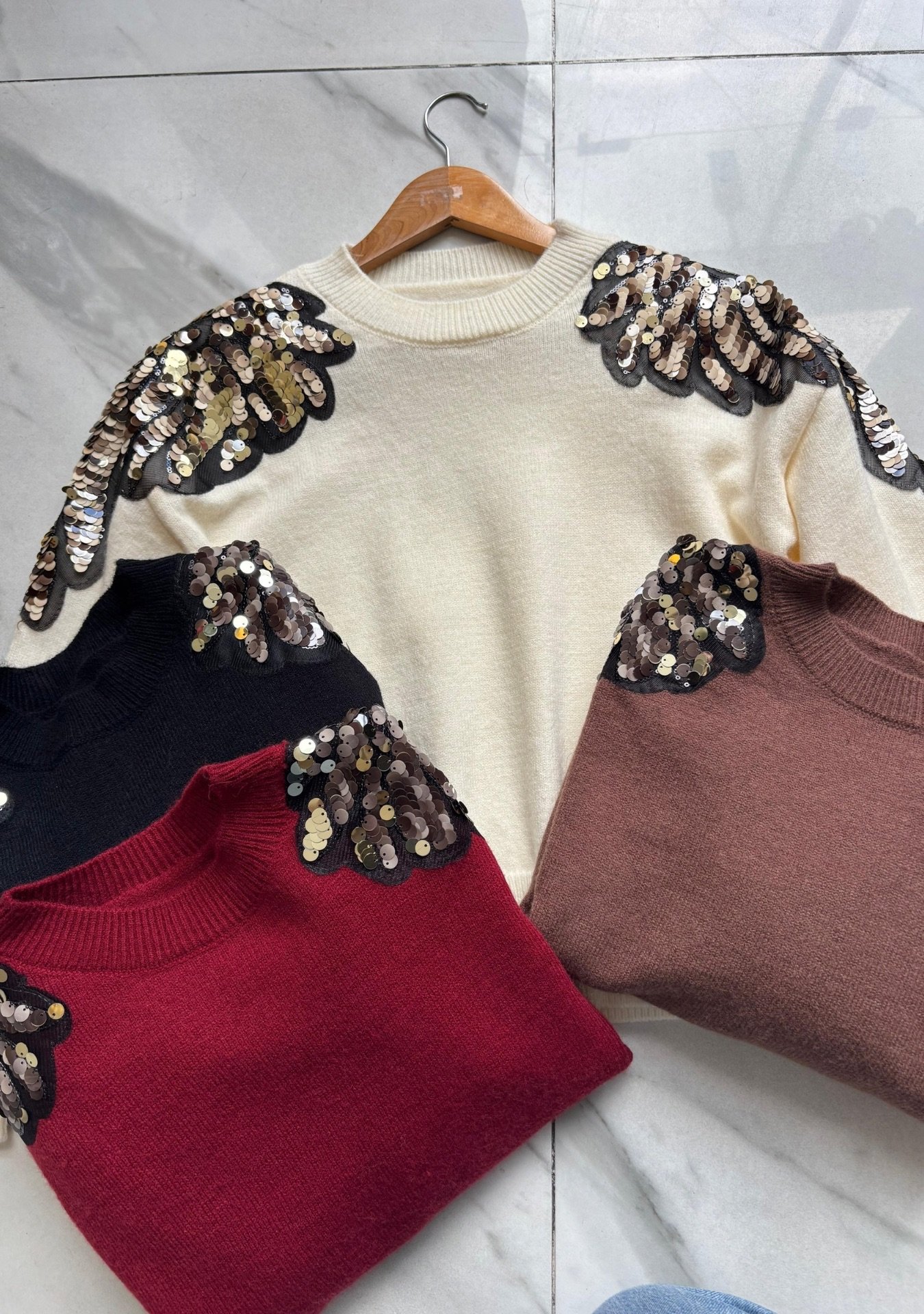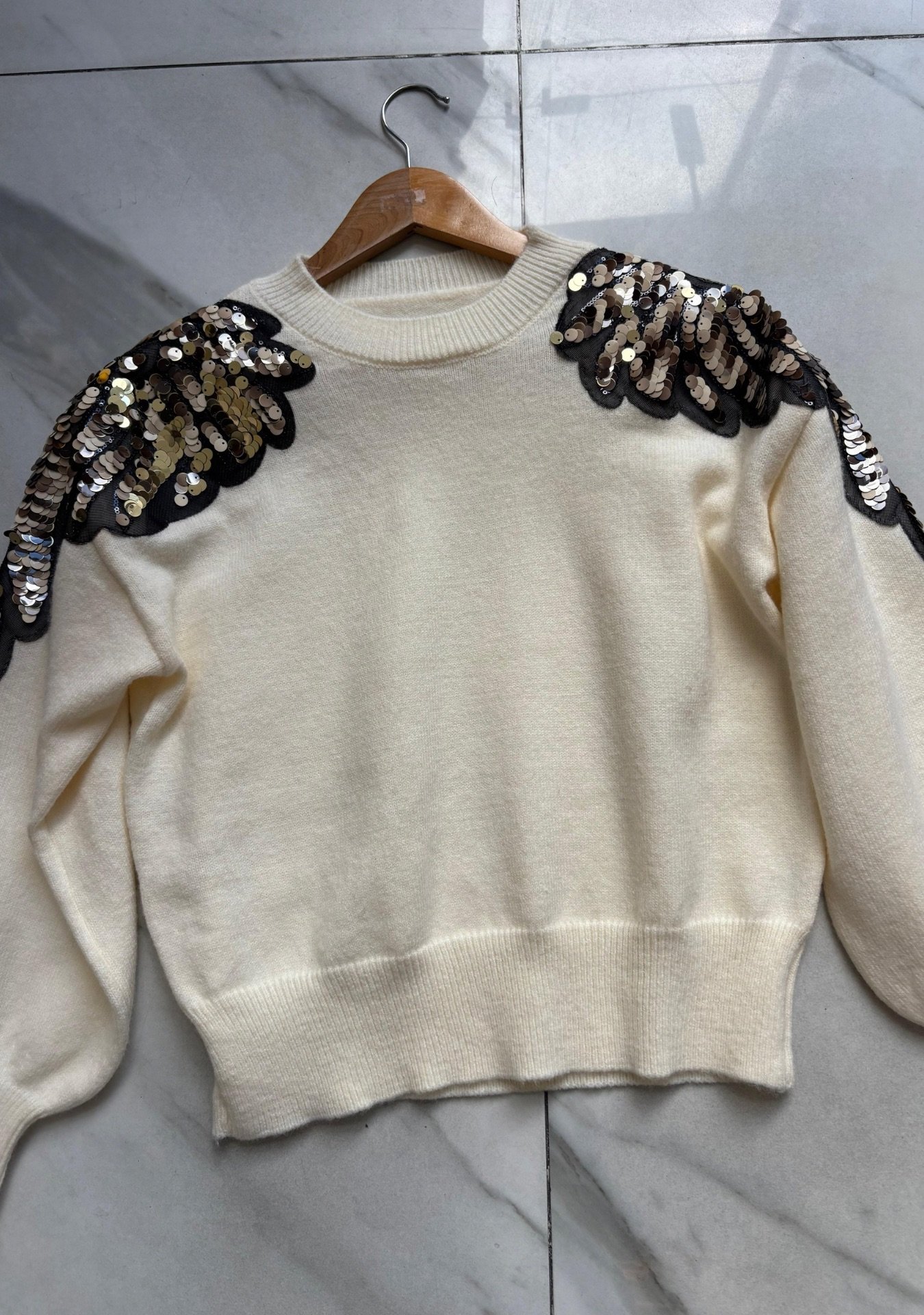 Pulover con lentejuelas en hombreras importado de bremer, talle único